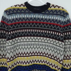 Gap Sweater Men Small Multicolor Zig Zag Lambswool Blend Crewneck Classic