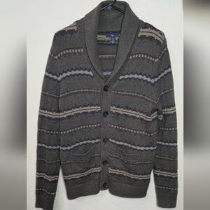 Gap Sweater Mens Medium Gray Shawl Cardigan Button Up Western Navajo Knit Hiking