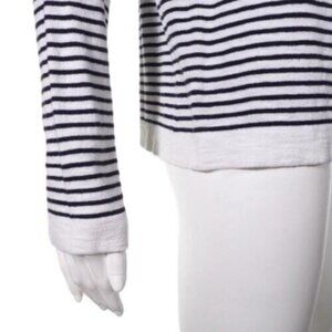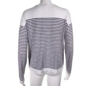 This Gap V-Neck Sweater for women in size small features a stylish striped pattern in black and white. Made from a comfortable cotton blend, it's perfect for casual or professional settings.