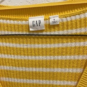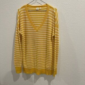 Gap Sweater Yellow and White striped V Neck knit 100% Cotton Sweater size S
