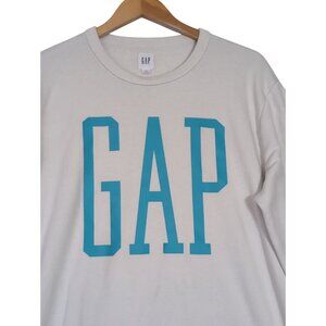 Gap Sweatshirt Mens M White Blue Spell Out Retro Preppy Beachy Pullover