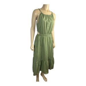 Gap Sz Small Halter Dress Cotton Midi Green Ruffle Milkmaid
