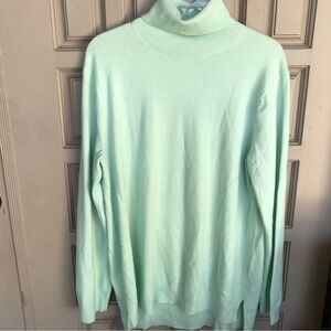 Gap SzXL Sweater Aqua Long Sleeve Split Hem Banded Turtle Neck Super Soft