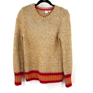 Gap Tan Striped Knit Sweater Alpca Wool Cotton Blend Popover Warm Womens Medium