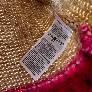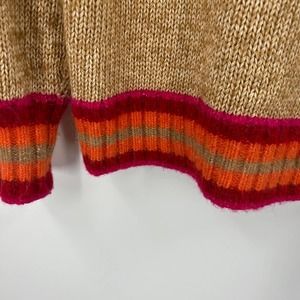Gap tan with red, pink and orange stripe, scoop neckline sweater popover, loose knit. Women's size medium.