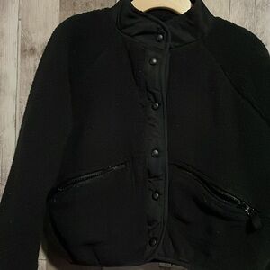 Gap Teen Sherpa black snap front fleece jacket size 8