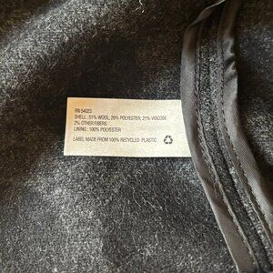 Shell: 51% wool; 26% polyester; 21% viscose; 2% other fibers. Lining: 100% polyester.