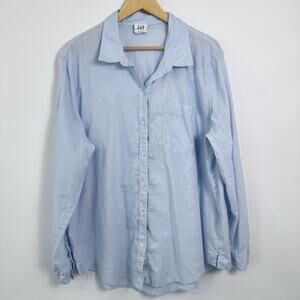 Gap The Easy Shirt Womens Size XXL Light Blue Linen Cotton Button Up Lightweight