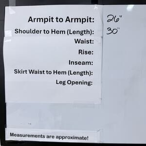 Written measurements are provided in the photo. All measurements are taken with the garment laid flat.