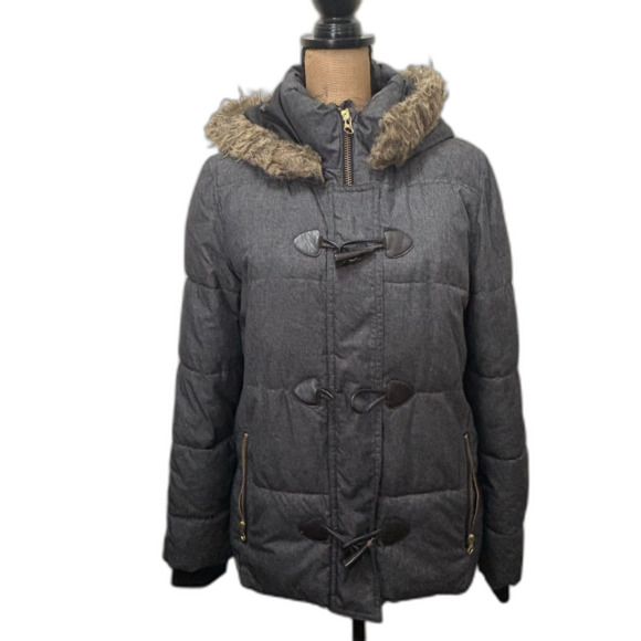 Gap Toggle Button Puffer Coat Faux Fur Hood Heavyweight Winter Gray Size Medium