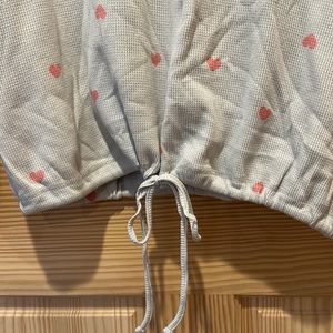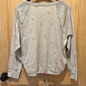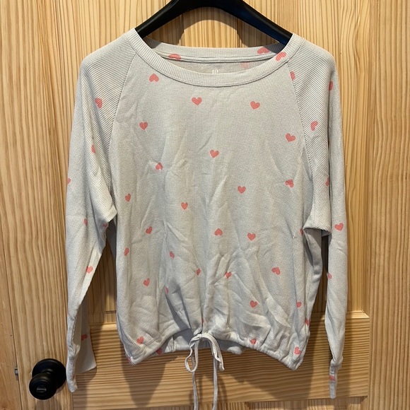 Gray with pink hearts thermal top from Gap. Drawstring waist that is functional. Approximately 22” from shoulder to hem. Excellent used condition!