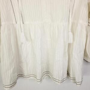 Gap Top Womens Size M Embroidered Tunic Cottagecore V Neck Boho White Peplum