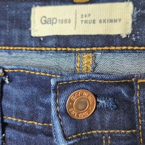 Gap true skinny jeans in a medium blue denim. These are a women's size 24 petite and in good condition. P42