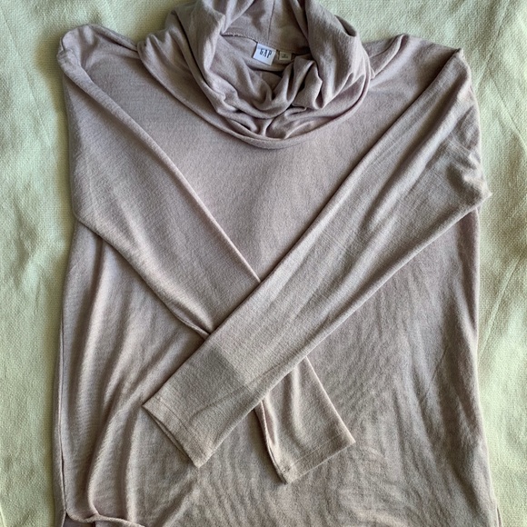 Light and subtle lilac color, this sweater is made of a plush material. The turtle neck is slightly cowl neck as well.