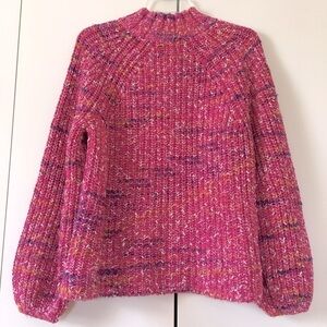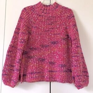Gap Marled Turtleneck Multi Pink Chunky Yarn Knit Balloon Sleeves Oversize Relax Fit Pull Over Thick Sweater