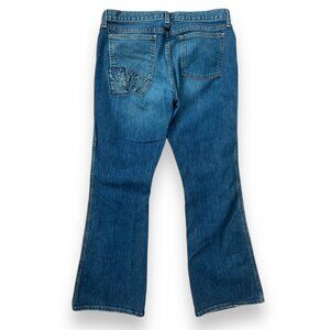 Gap Ultra Low Flare Leg Patch Jeans Medium Wash Bootcut Hippie Boho