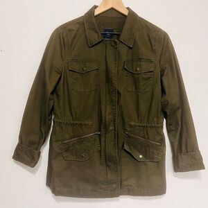 Women’s Gap Utility Jacket Size Small Olive Green Cinch Waist Zip And Snap Closure Snap Wrists