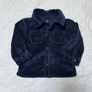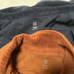 Gap velour button up shirt with collar bundle. Lined top makes them seem more like a jacket / shacket. One navy blue top and one copper brown top. Very good condition, minor wear. Size 18-24 months.