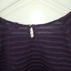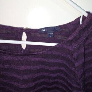 GAP Purple Sheer Striped 3/4 Sleeve Boat Neck Top, Women's Size Small