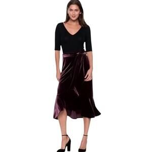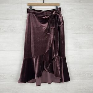 Gap Velvet Wrap Midi Skirt Size Small Vamp Red Tie Waist Ruffle Elastic Waist