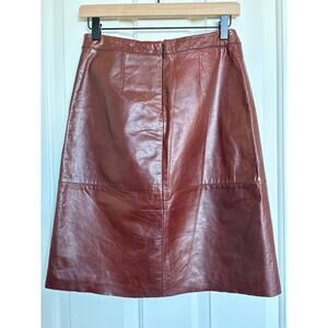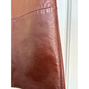 Gap Vintage Y2K Womens Brown Leather A-Line Skirt Raw Hem Stitch Accents