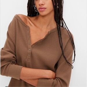 Gap cozy brown waffle weave long sleeve Henley shirt. Classic casual, bohemian, See photos for design details,measurements and ware.