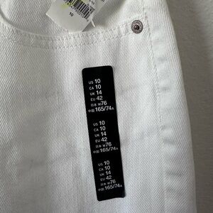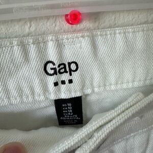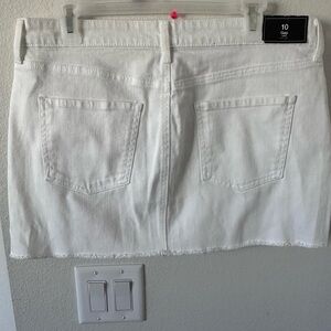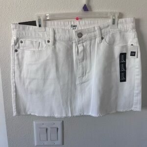 Stylish white denim skirt by Gap. Features a classic design with a frayed hem. Size 10 NWT