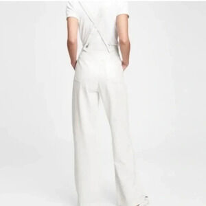 Gap White Ecru High Waist Wide-Leg Suspender Jeans With Washwell Size 16 Short