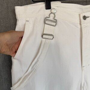 Gap White Ecru High Waist Wide-Leg Suspender Jeans With Washwell Size 16 Short / 33