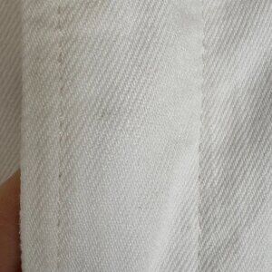 A barely there light mark on the button fly placket, see lady 2 photos and a shorted inseam for us petite girls.