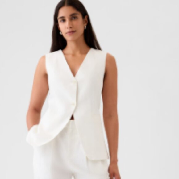 Gap 365 High Rise Linen-Cotton Trousers in New Off White
