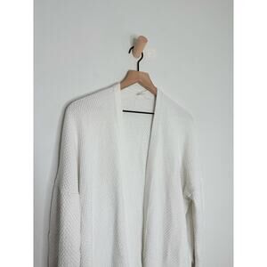 Gap White Textured V Back Cardigan Sweater Large Chunky Knit Minimalist