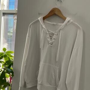 Gap White Tie Up Lightweight Hoodie Sweatshirt Size Small. Excellent condition, like new. Lightweight, soft material. Front kangaroo pocket. Hooded sweater. Great loungewear!