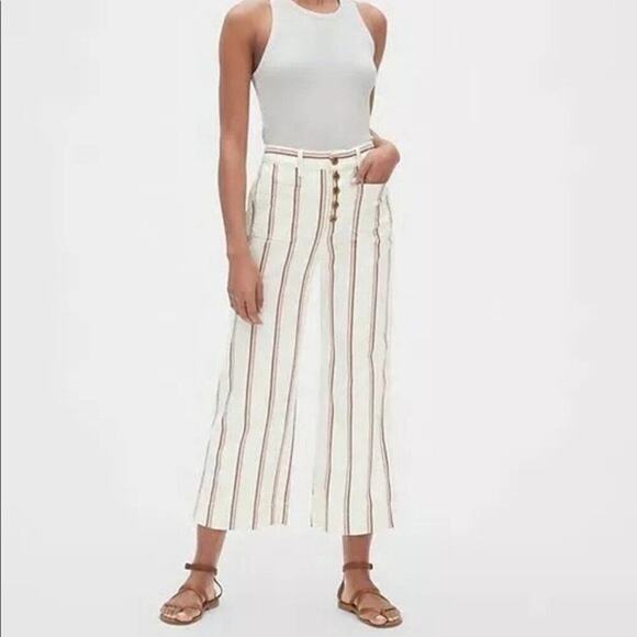 Gap Wide Leg Cropped Pants Womens 6 Multicolor High Rise Striped