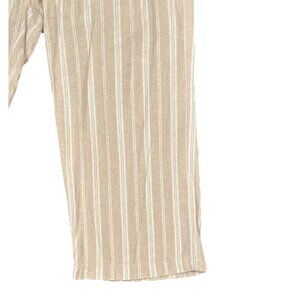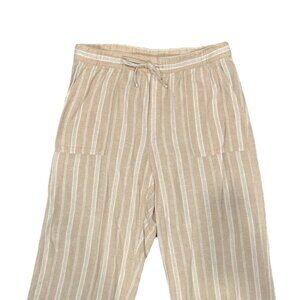 Gap Wide Leg Linen Blend Pants Women's Size Large Khaki Stripe Coastal Paper Bag