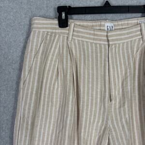 Gap Wide Leg Pleated Pants 18T Tan Linen Trouser Chino Academia Capsule Quiet Beige Cream White Striped High Rise Elastic Waist Pockets Corp Career Work Office Business Church Beach Lagom Preppy Nautical