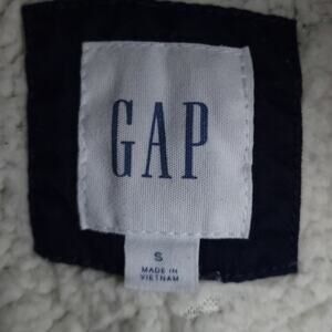 Gap Women Anorak Jacket Blue Small, Tie Gathered Waist, Faux Fur Hood, Sherpa Lined. Zip up coat. Drawstring waist. Front pockets.