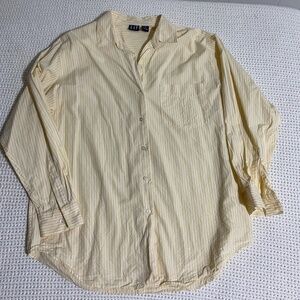 Relax fit - maybe Oversized ----- Gap Women Butter 100% Cotton Yellow Long Sleeve Button-Down Shirt M Long Sleeve Striped. invbox0014