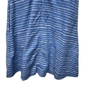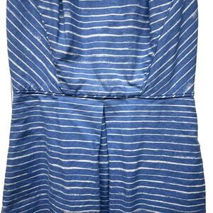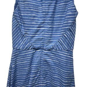 Gap women's striped fit & flare dress in blue & white. Round neck. Sleeveless. Side pockets. Knee length. In good used condition. No stains, tears or holes.