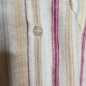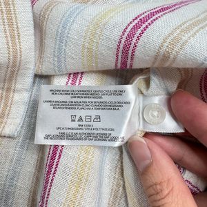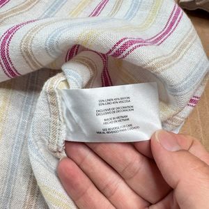 Gap Women Linen Blend Button Down Shirt Boyfriend Blouse Sz M Multicolor Stripes