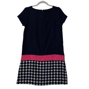 Gap Women Navy Pink Layered Color Block Polka Dots Print Shift Dress Size 4