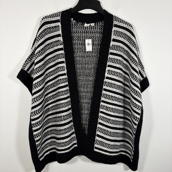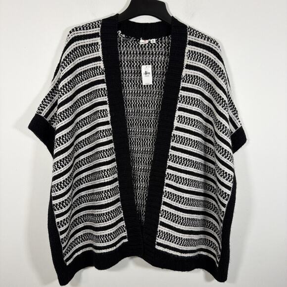 Gap Women Stripe Open Front Poncho Shrug One Size Black White Open Front NWT