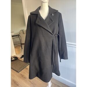 Gap Women Sz M Virgin Wool Trench Coat Wrap Tie Button Pockets Unique Minimalist
