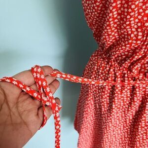 Gap Women XS Red Floral Flower Casual Dress Spring Summer Tie Waist 0672