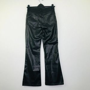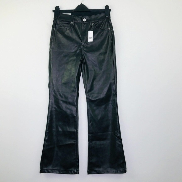 Gap Women's 26/2P Pants Black Solid Faux-Leather 70s Flare High Rise NWT G3