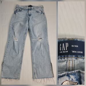 Gap Women’s 90s Loose Fit Blue High Rise Denim Distressed Jeans Acid Size 10/30R