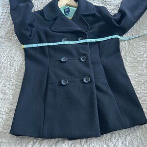 Gap Womens Black Double-Breasted Wool Blend Peacoat With Mint Satin Lining