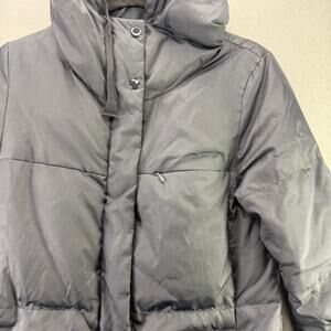 Black Gap puffer coat in women’s size Small. This coat features a quilted insulated design to keep you warm in cold weather while remaining lightweight. Pre-owned in good condition with normal signs of wear — minor surface creases or slight fabric pilling may be present. Please review all detailed pictures carefully, as they provide the best indication of condition and any imperfections.