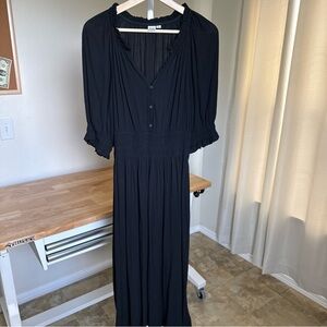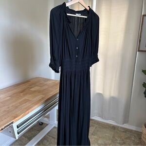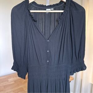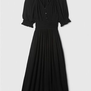 Gap Women’s Black Smocked Fitted Waist Splitneck Midi Dress Size M