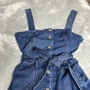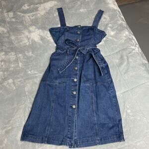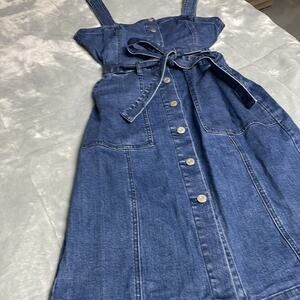Button down blue denim dress by GAP. Great quality. Cotton/spandex. Size small. Tie front